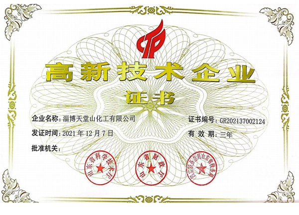 公司產(chǎn)品符合國(guó)家的產(chǎn)業(yè)政策,各種手續(xù)齊全,通過(guò)了環(huán)保、衛(wèi)生、消防、安全生產(chǎn)許可等各項(xiàng)驗(yàn)收,企業(yè)化學(xué)品安全標(biāo)準(zhǔn)化三級(jí)達(dá)標(biāo)驗(yàn)收,并且通過(guò)了ISO9001質(zhì)量管理體系認(rèn)證、ISO14001環(huán)境管理體系、ISO45001職業(yè)健康管理體系,先后被有關(guān)部門(mén)授予“市級(jí)重合同守信用企業(yè)”“消費(fèi)者滿意單位”“質(zhì)量、計(jì)量管理先進(jìn)單位”“勞動(dòng)關(guān)系和諧企業(yè)”“企業(yè)免檢單位”“淄博市專精特新中小企業(yè)”“山東省化工明星單位”“山東化工發(fā)展?jié)摿?0強(qiáng)”“淄博市智能車(chē)間”“山東省創(chuàng)新型中小企業(yè)”“科技型中小企業(yè)”“高新技術(shù)企業(yè)”“山東省專精特新”等稱號(hào)。